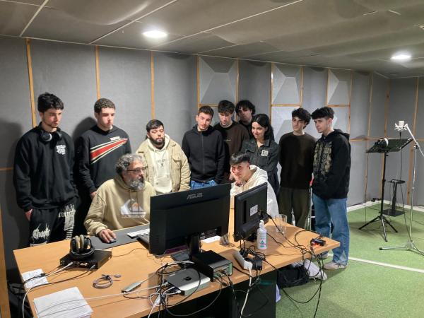 Alumnos de los ciclos de Sonido y Dj en el estudio de Doblaje Cinema Iberolusa