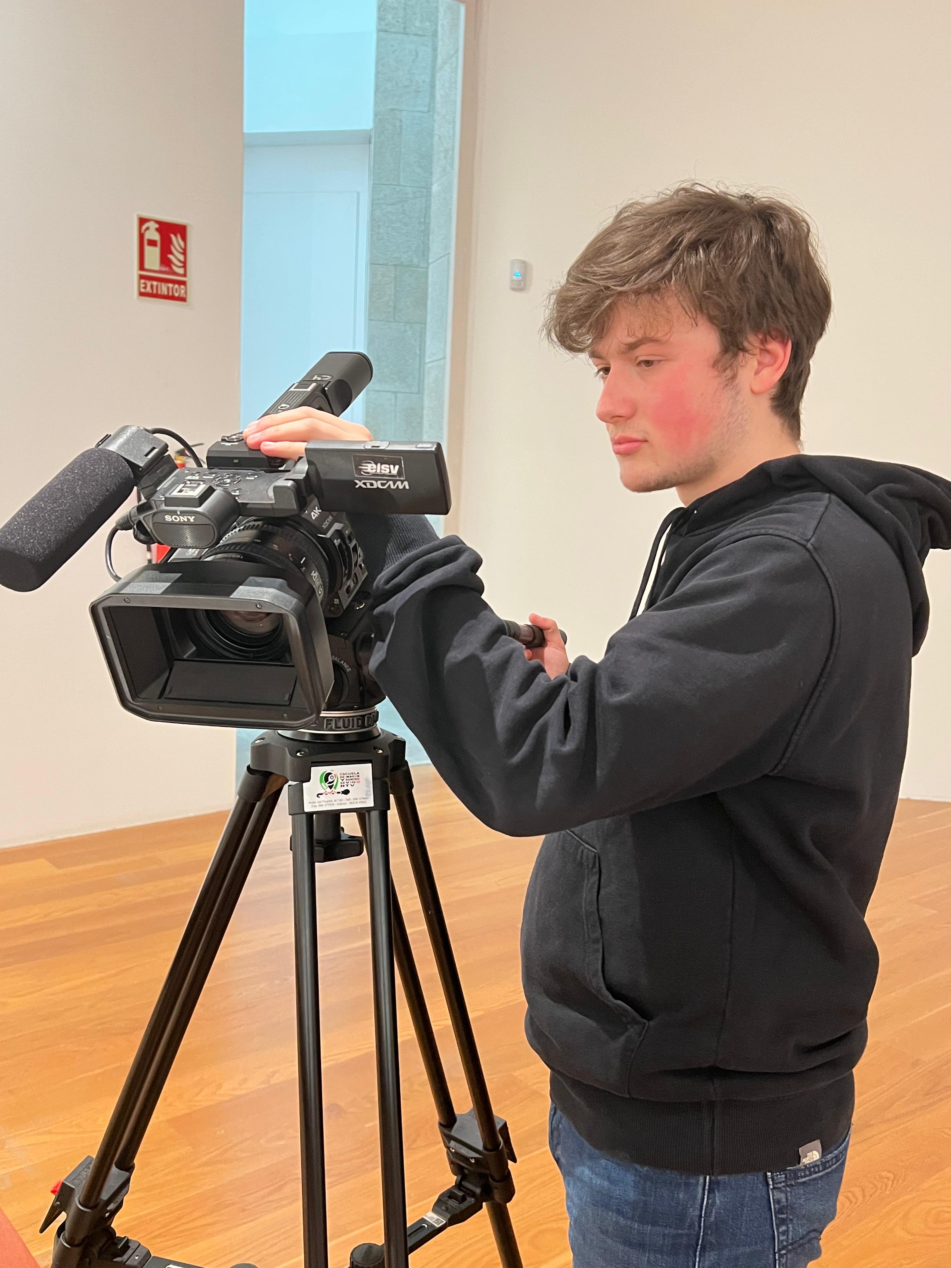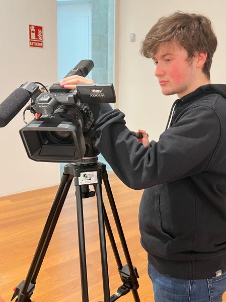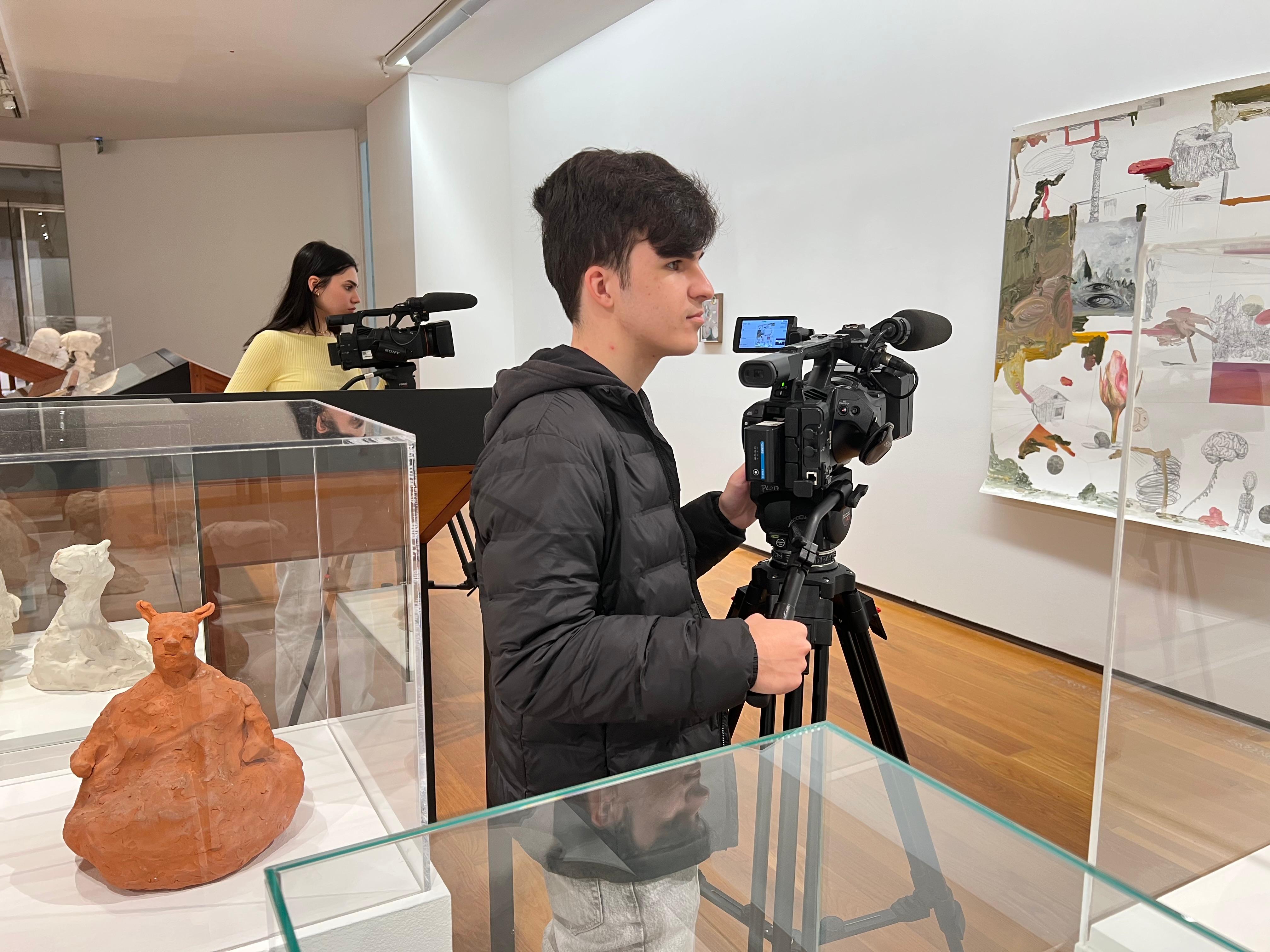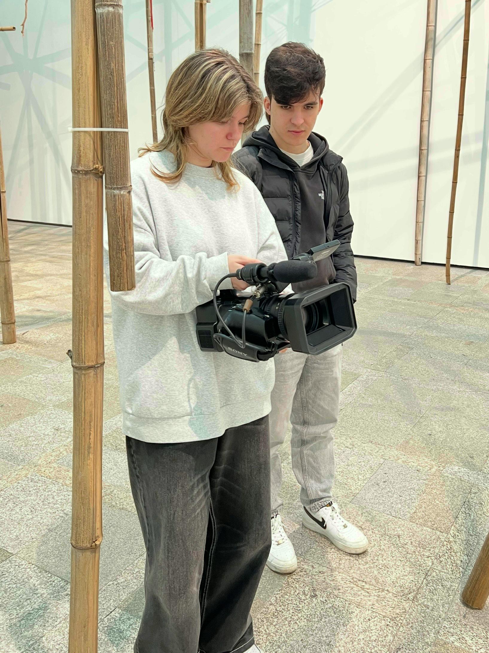 Práctica de grabación de un reportaje de EXPO MARCO por parte de los alumnos del Ciclo de Iluminación