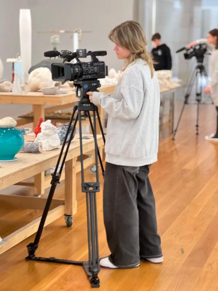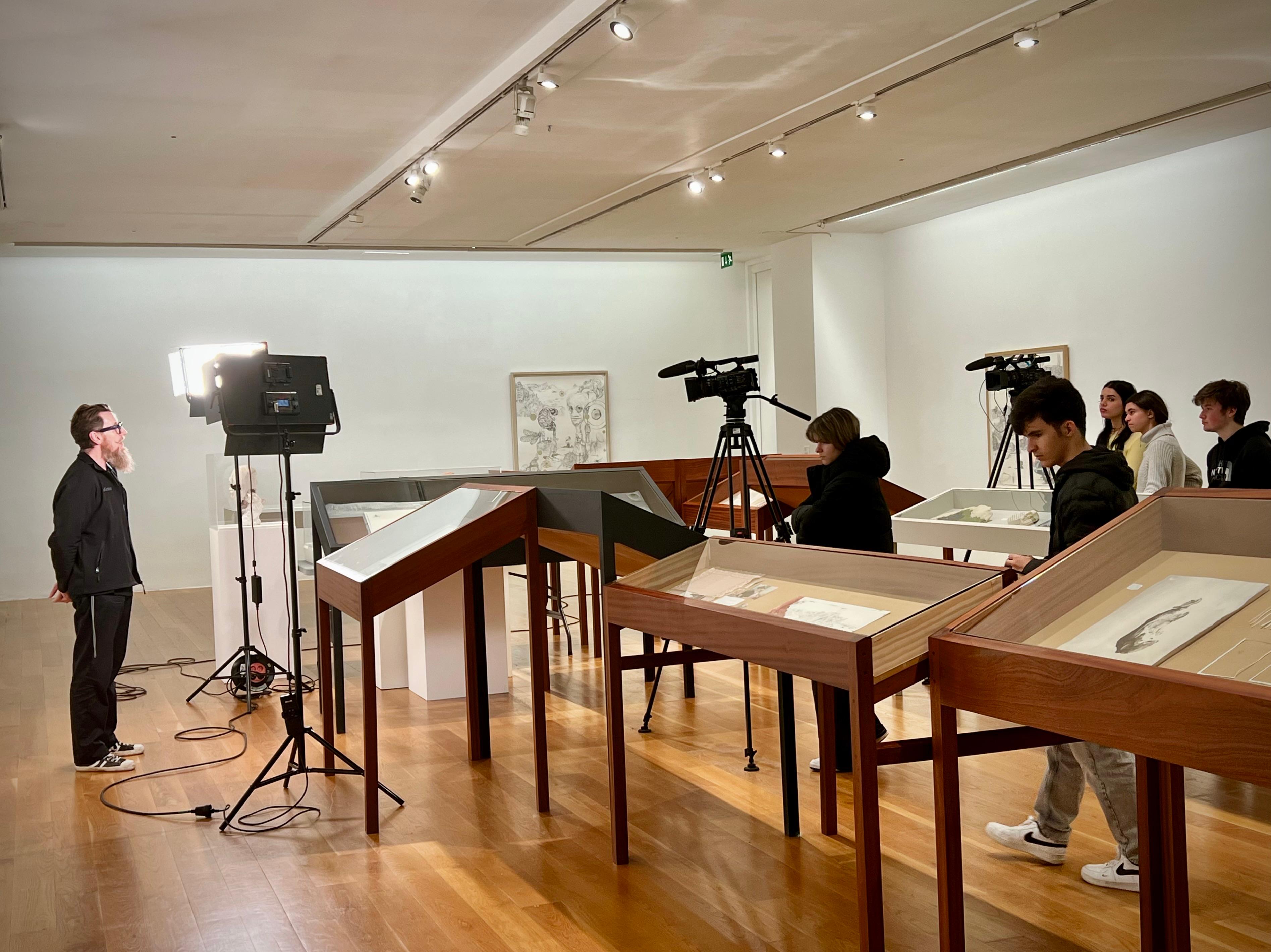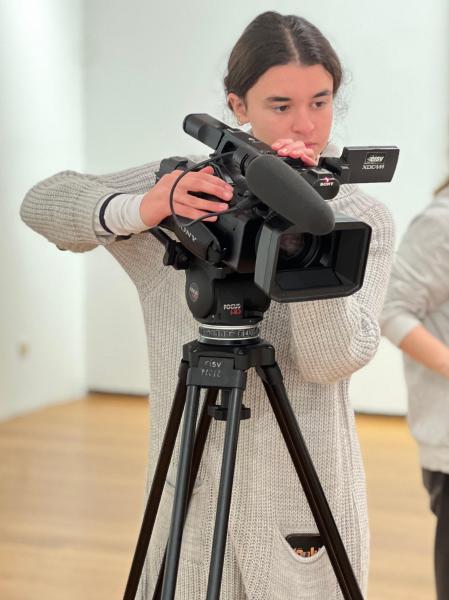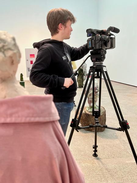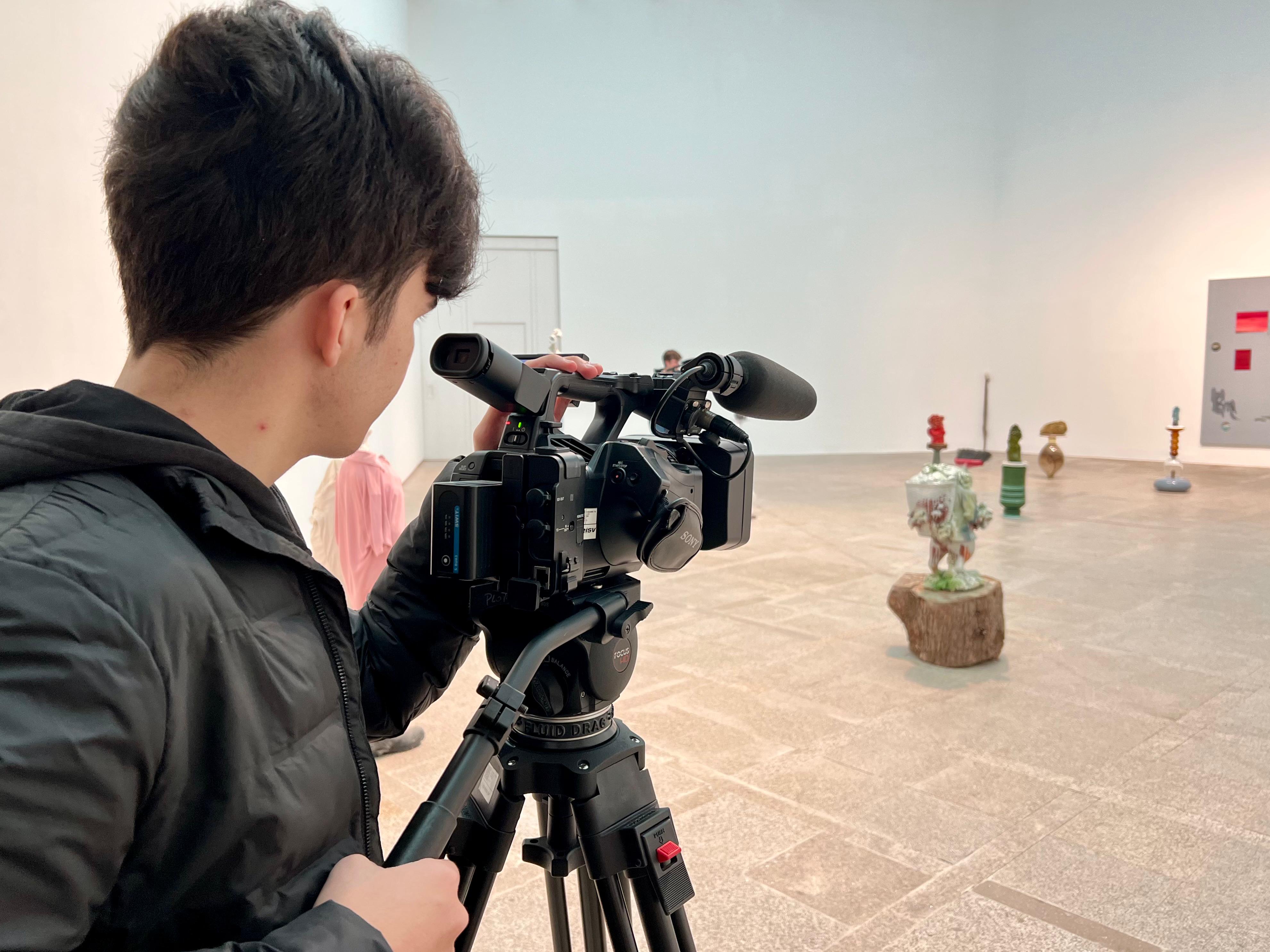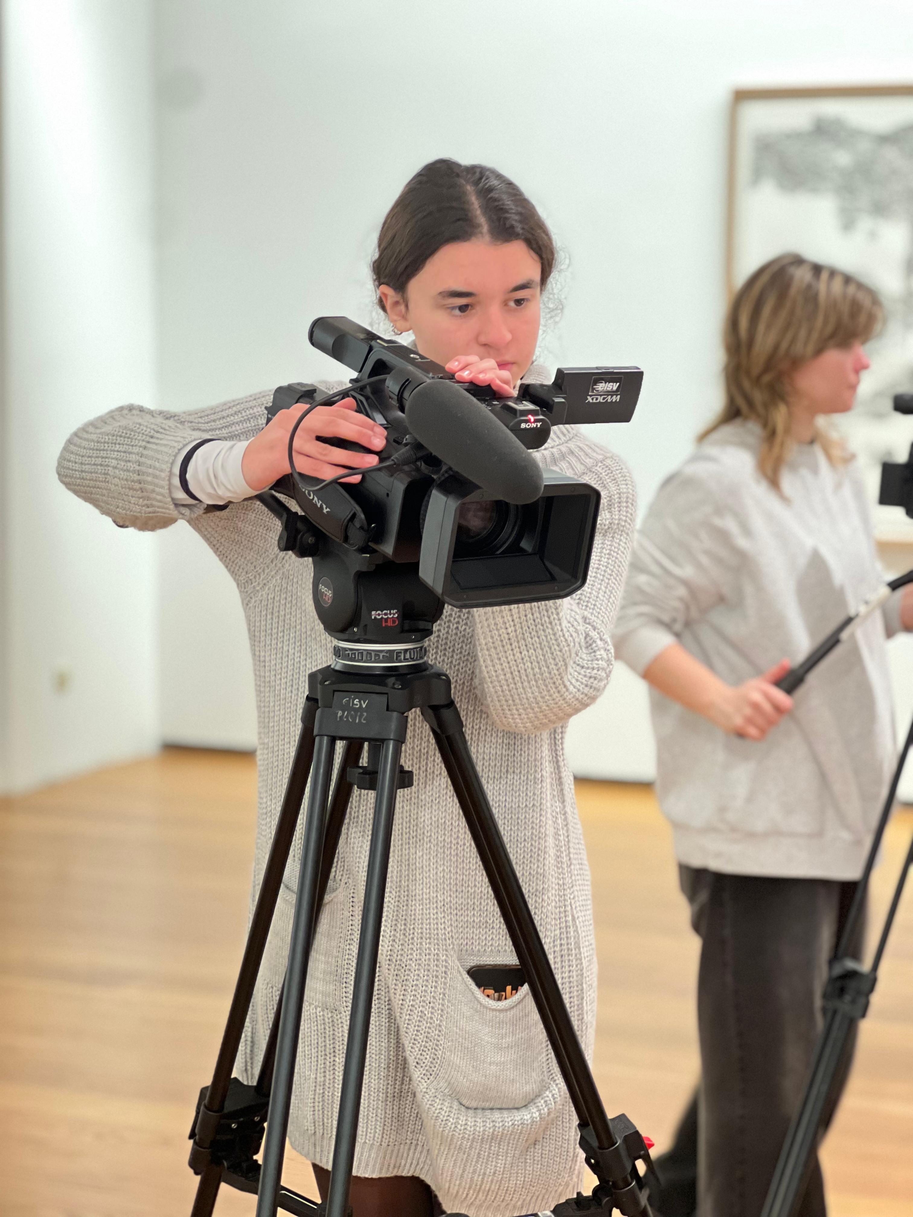 Práctica de grabación de un reportaje de EXPO MARCO por parte de los alumnos del Ciclo de Iluminación