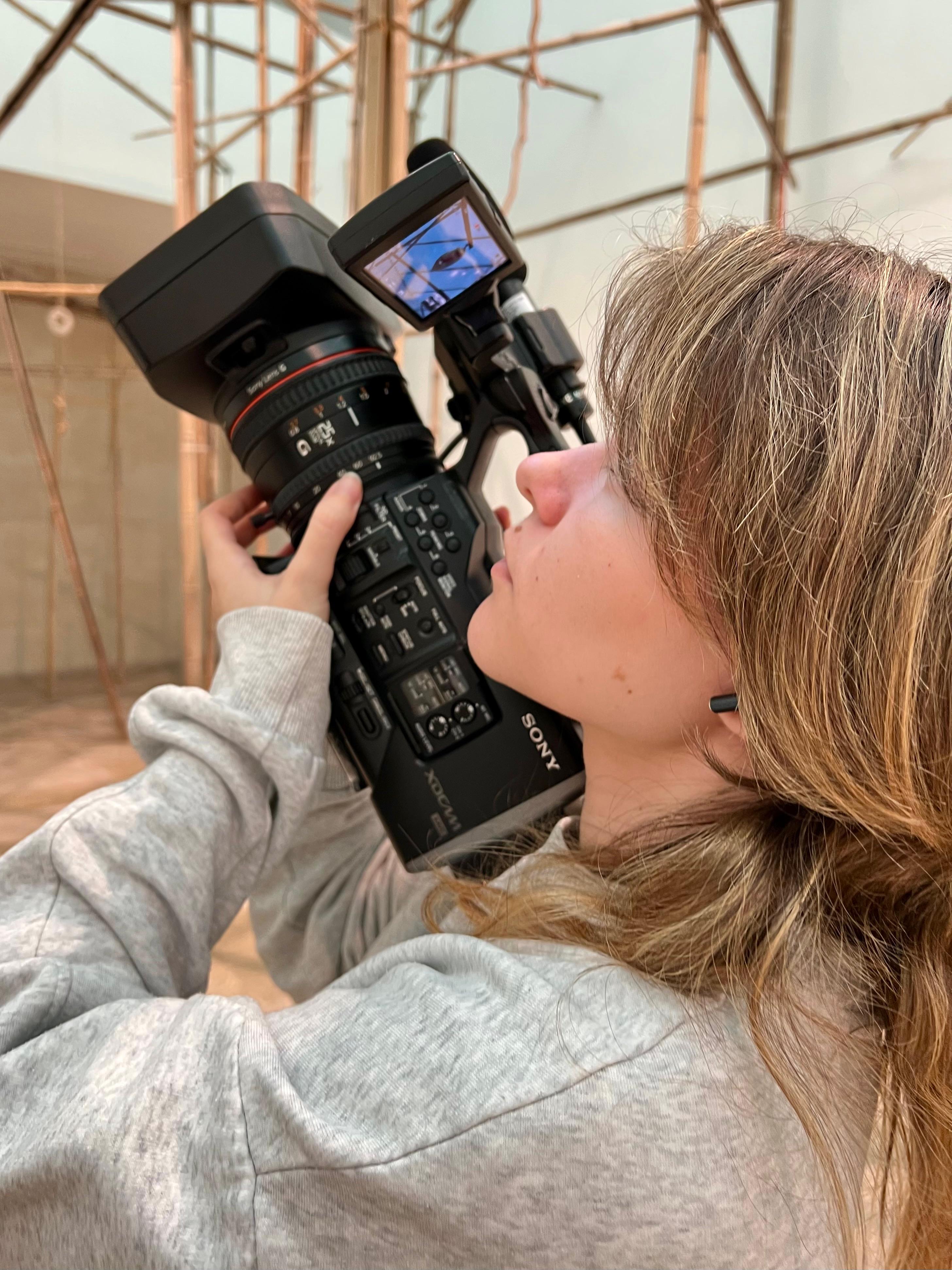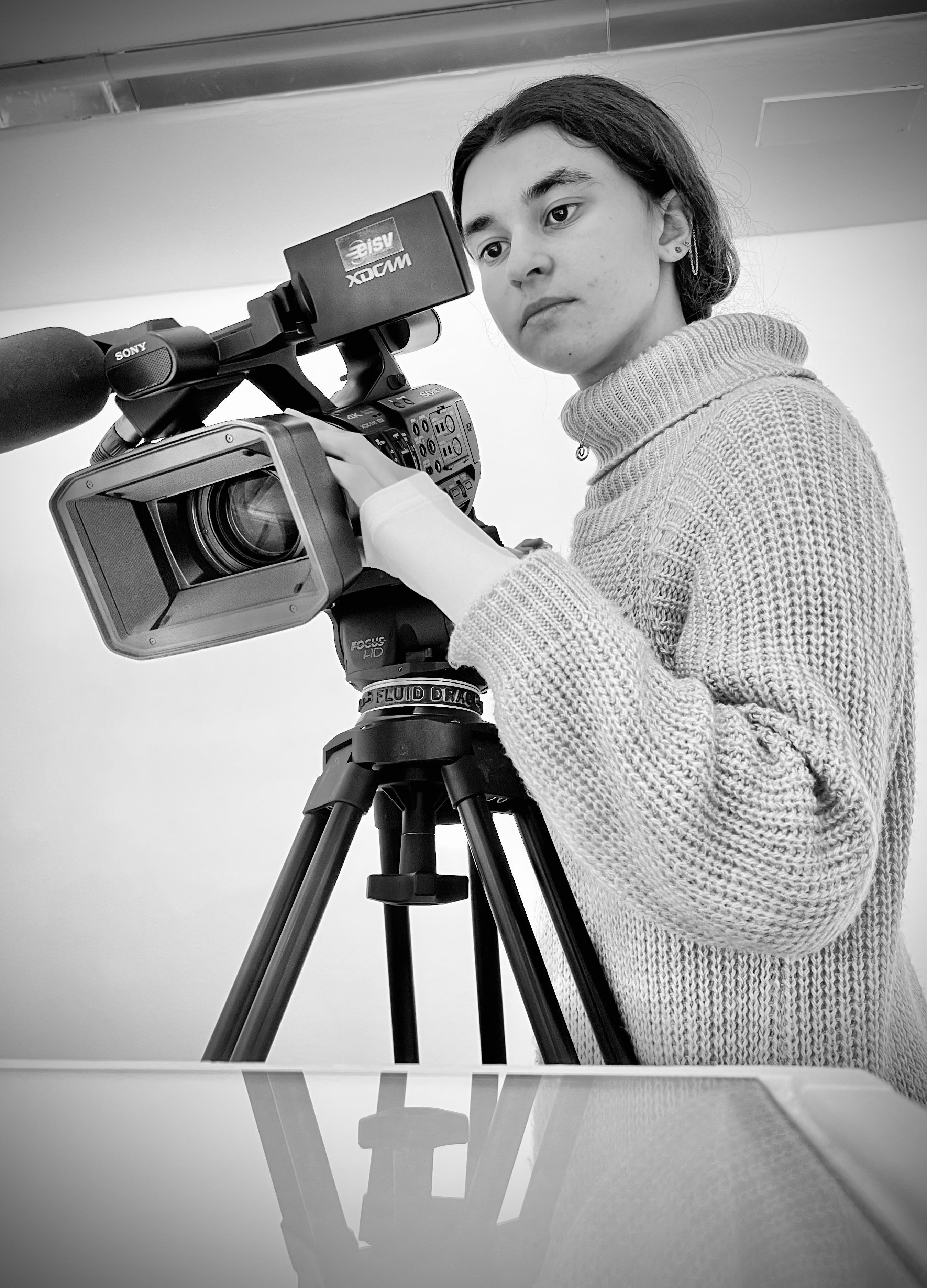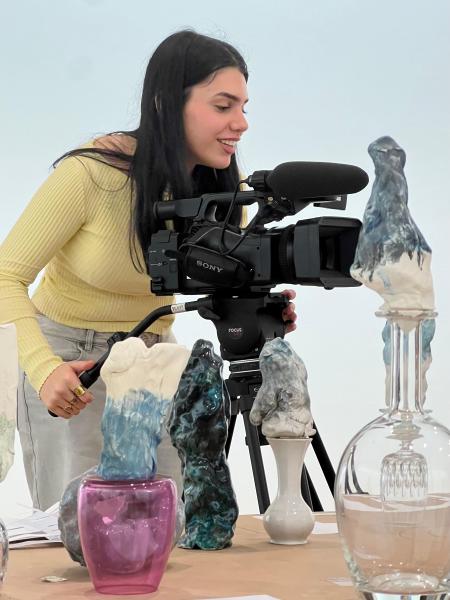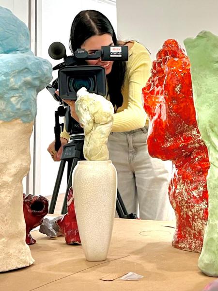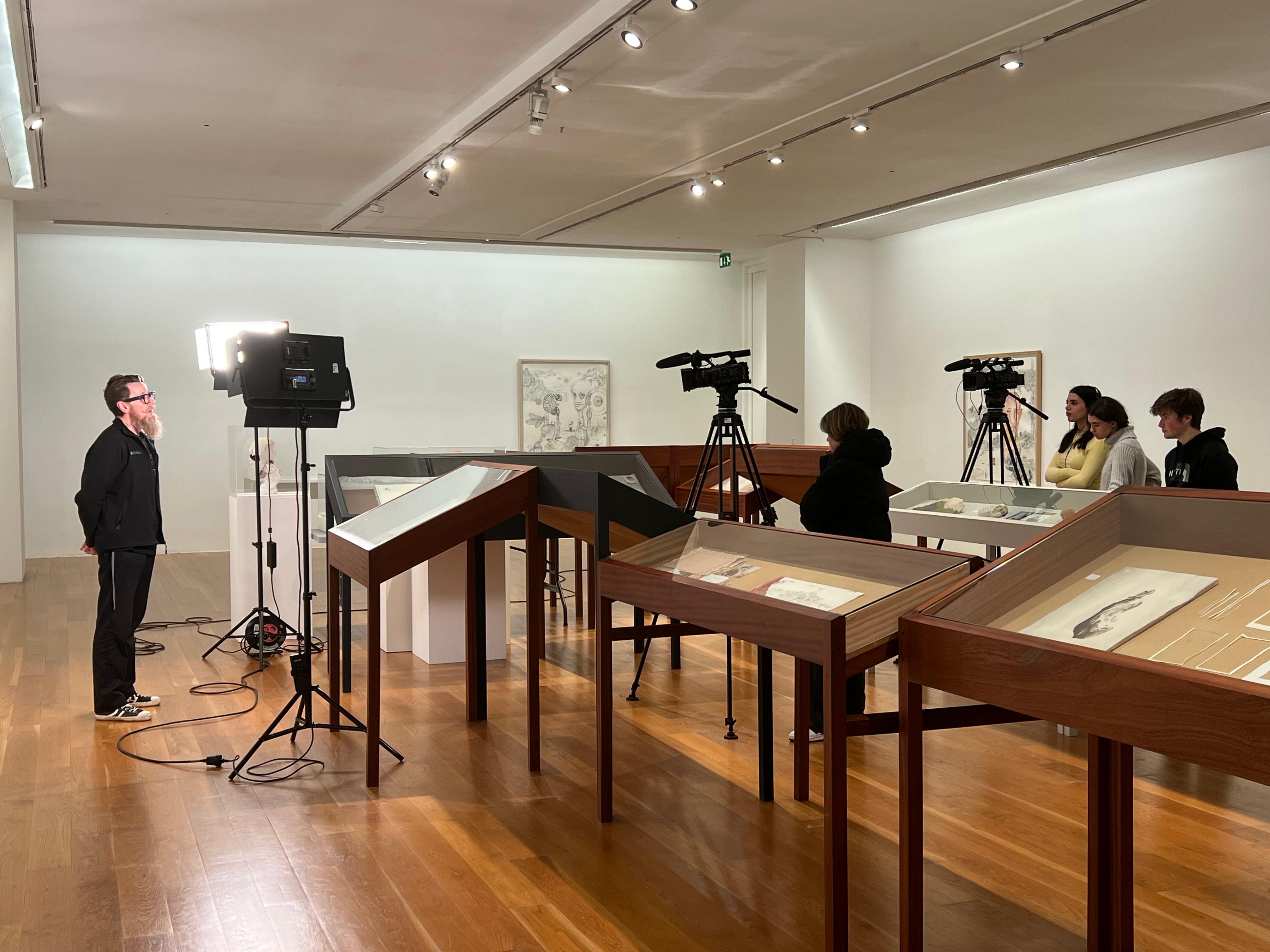 Práctica de grabación de un reportaje de EXPO MARCO por parte de los alumnos del Ciclo de Iluminación